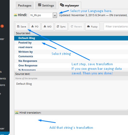 4) On next page, select your language, and click Start translating, on next page you will see list of all available strings and a box to enter their translation.
